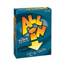 Ice-breaker party game where a player chooses a true/false statement off a card (i.e."I have sung at karaoke bar," "I have never flunked a test") and the other players try to guess whether or not the card reader is telling the truth. They make their decision by placing chips on the either the'TRUE' or 'FALSE' halves of the board (there is no choice but to go 'all in.') Any chips bet on the wrong answer are discarded, and the last player to have any chips in play wins.