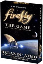 Firefly: The Game - Breakin' Atmo introduces fifty new cards to the game: 25 job cards and 25 supply cards. New jobs present new challenges for captains and their crews with payouts based on their skill levels. The additional supply cards offer new resourceful crew members for hire and specialized gear to help you pull off the big scores.